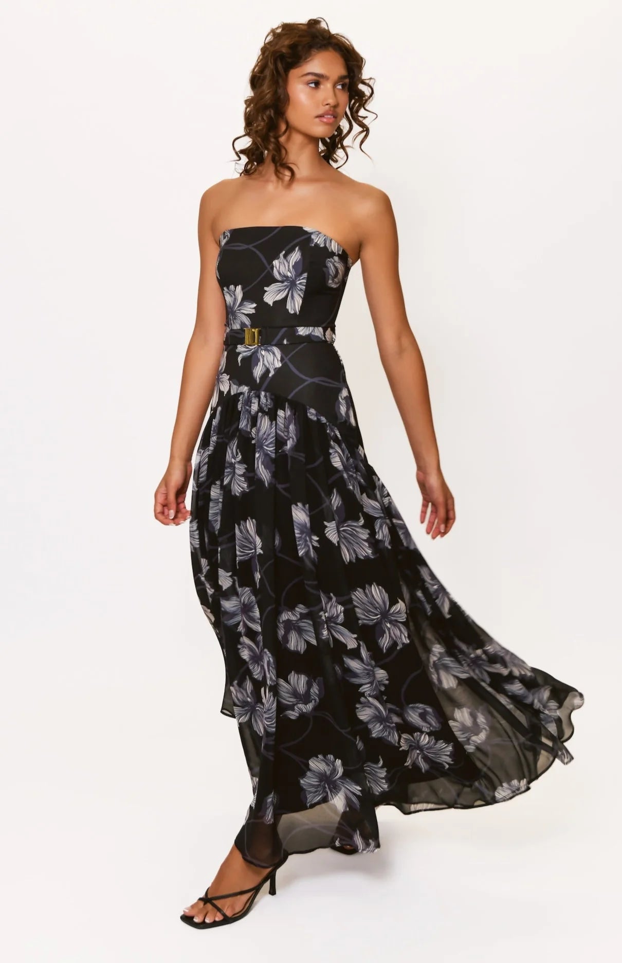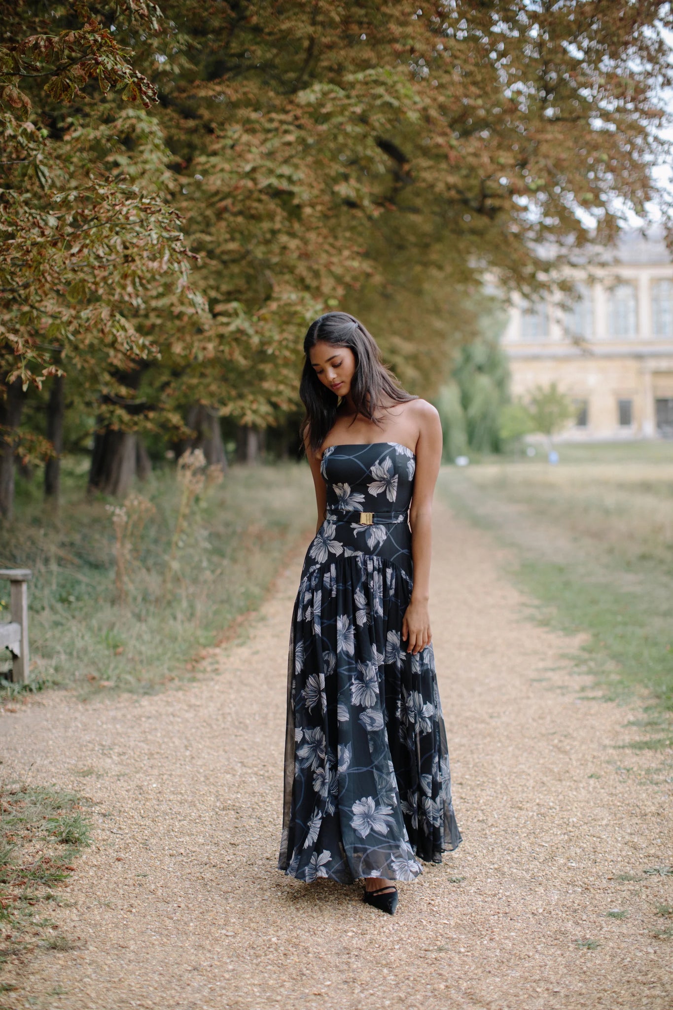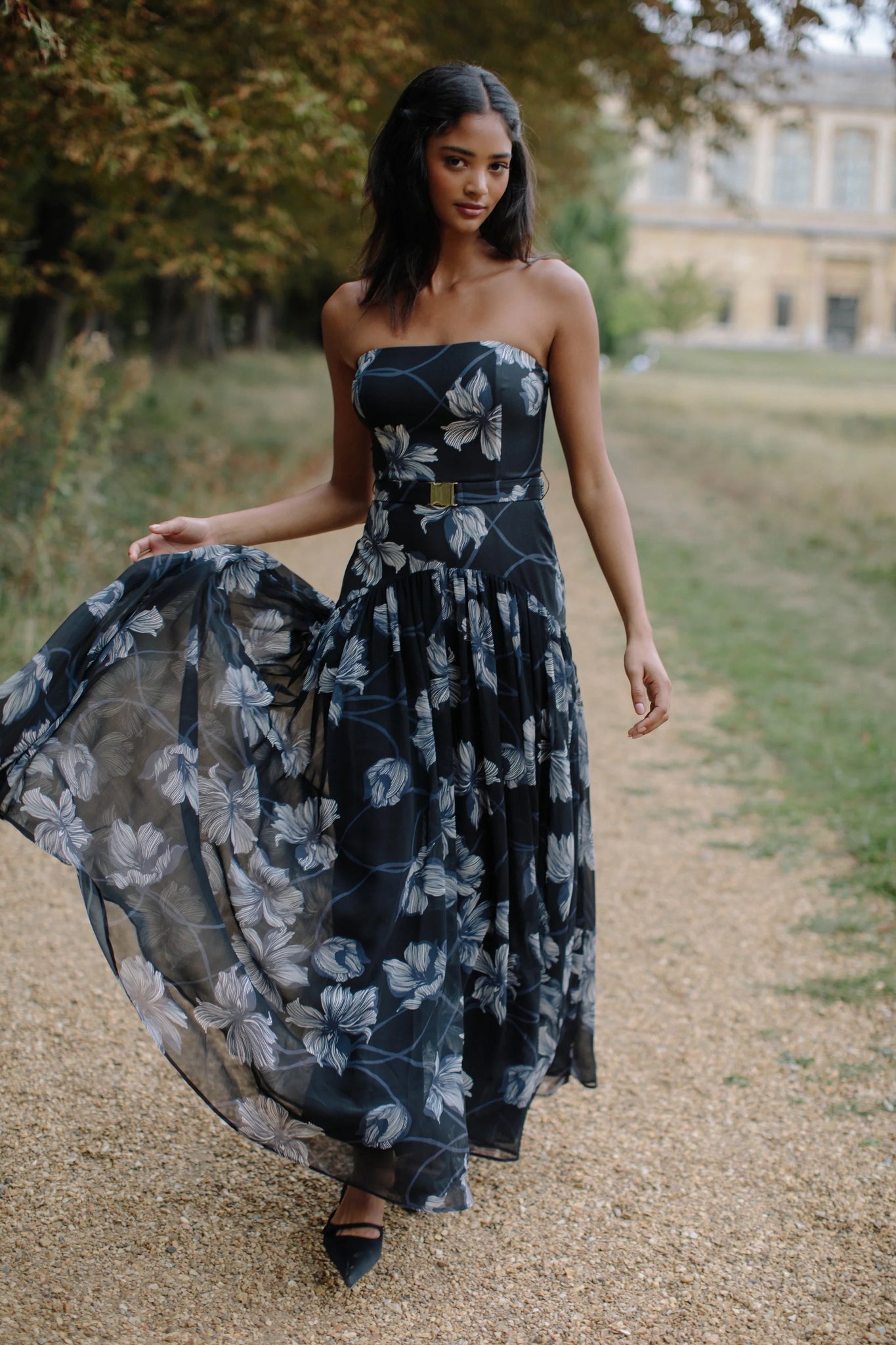 Hutch Navy Two Tone Vining Buds Carmel Dress