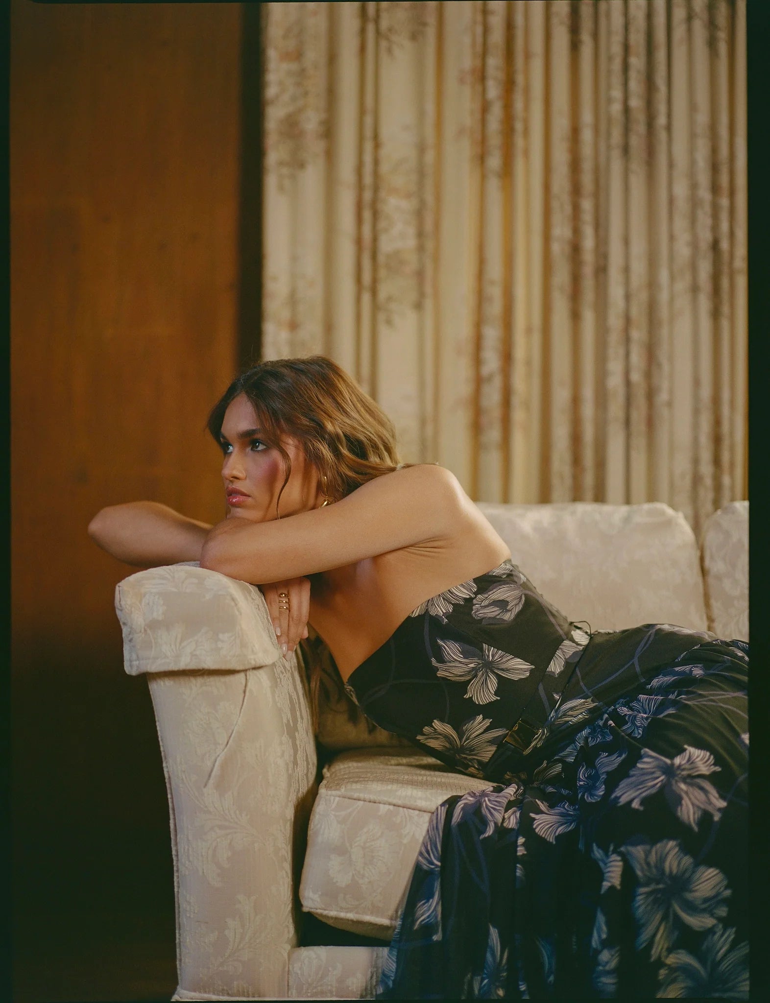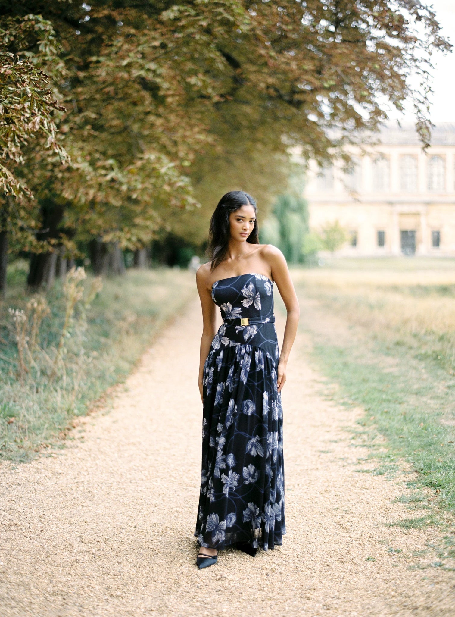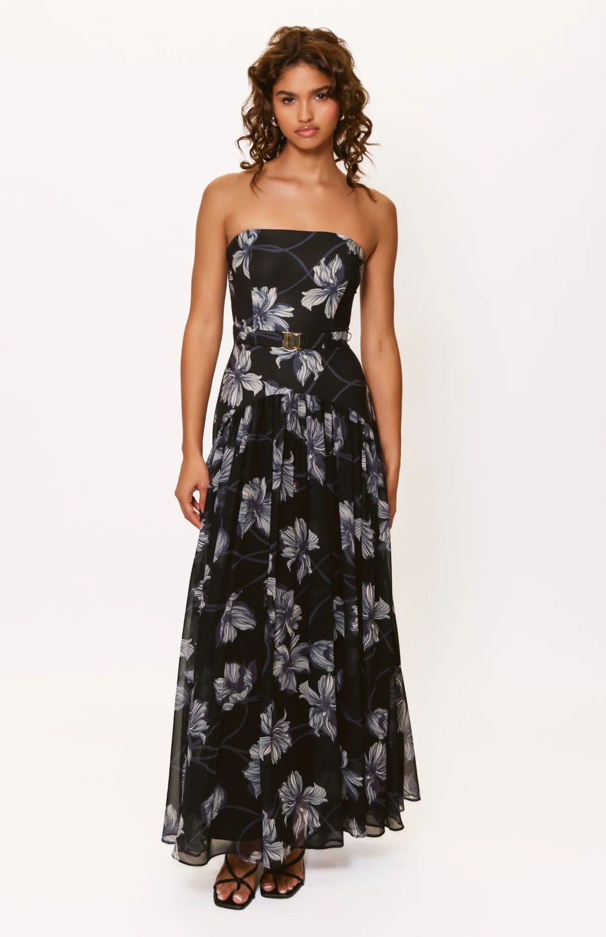 Hutch Navy Two Tone Vining Buds Carmel Dress