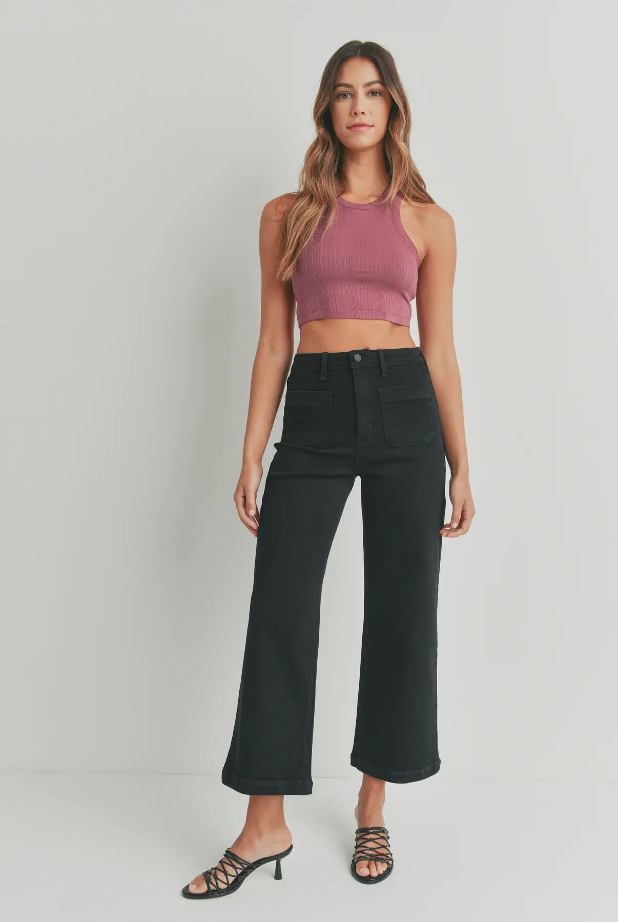 Patch Pocket Wide Leg Flare Jean