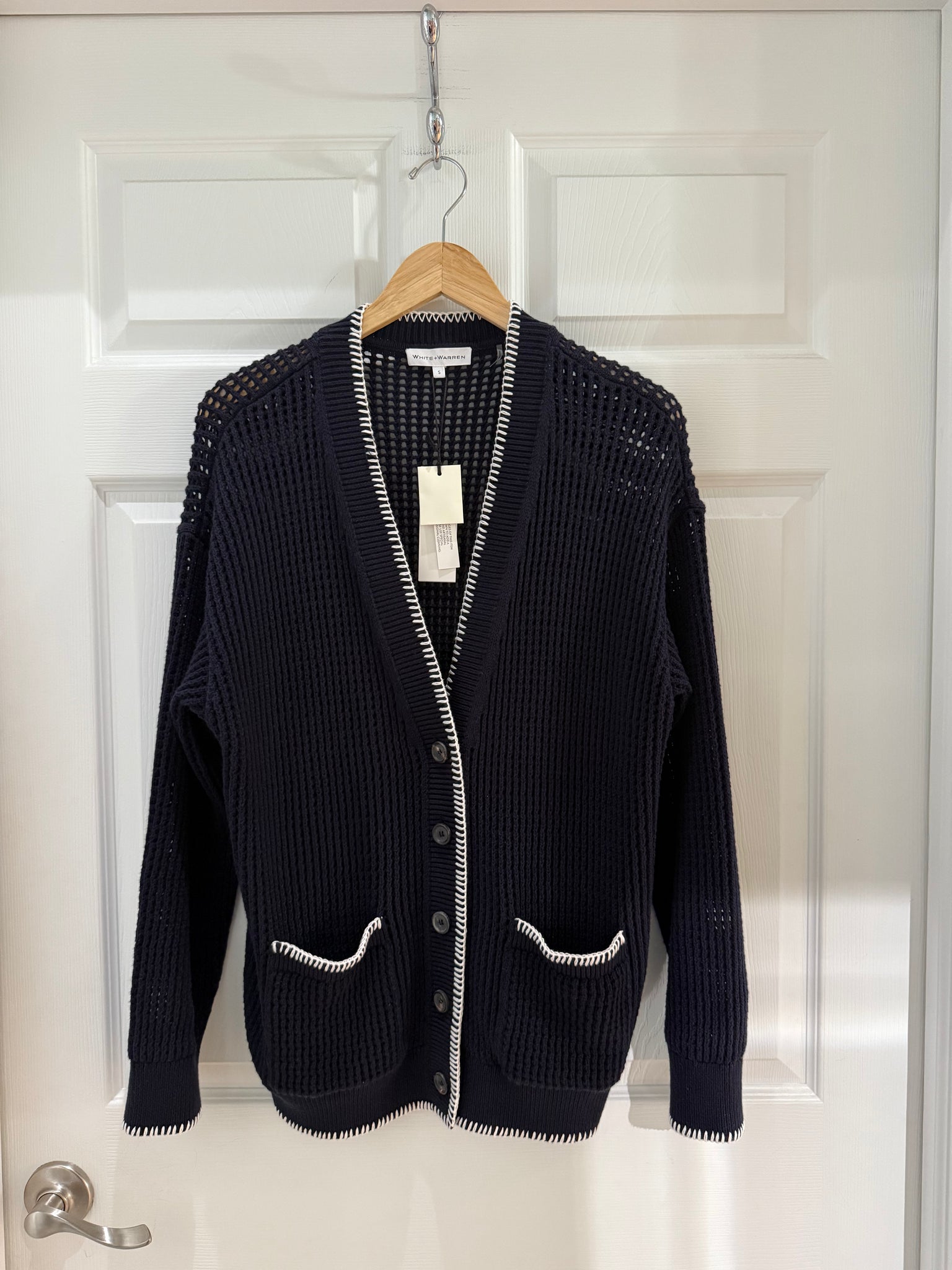 White & Warren are known for their Mongolian cashmere, made supremely soft through a custom wash technique. Select cashmere styles are finished with three hand-embroidered bar tacks at the back neck or side seam—an abstract "W" that signifies the White & Warren touch.